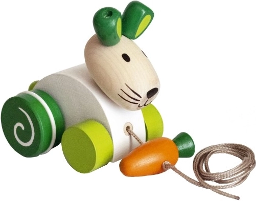 Acest iepuraș de tras din lemn îi motivează pe copii să meargă și să fie activi. Datorită finisajului neted și construcției robuste, jucăria este sigură și plăcută la atingere. Morcovul prins de șnur adaugă un element distractiv și stimulează imaginația copiilor.