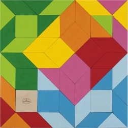 În set găsiți 49 de pietre din lemn în două dimensiuni (3 × 3 cm și 3 × 5,5 cm) și 4 modele de mozaic pe hârtie pentru un start ușor și inspirație. Ambalajul compact de 20 × 20 × 3,7 cm facilitează depozitarea și transportul. Culorile vii atrag atenția și facilitează învățarea culorilor și formelor.