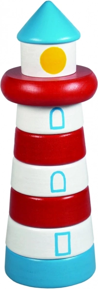 Farul din lemn, sub formă de piramidă de stivuire, îi invită pe copii să așeze piesele pe ax în funcție de formă și mărime. Jocul susține intuitiv coordonarea ochi–mână, răbdarea și percepția culorilor și formelor și, în același timp, stimulează plăcut simțul tactil datorită suprafeței netede.