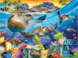 Descoperiți farmecul asamblării spațiale cu puzzle-ul 3D plaja țestoaselor. Efectul optic special oferă imaginii profunzime, astfel încât unele personaje sau obiecte par mai îndepărtate decât cele din prim-plan. Copiii își exersează motricitatea fină, răbdarea și atenția la detalii, bucurându-se totodată de satisfacția imaginii finalizate.