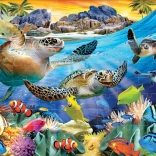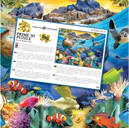Bucurați-vă de distracție cu puzzle-ul pentru copii cu efect optic 3D, care creează impresie de profunzime și aduce la viață motivul țestoaselor pe plajă. Ideal pentru copii de la 3 ani, susține concentrarea, motricitatea și plăcerea asamblării. Dimensiune compactă după asamblare cca 31 × 23 cm.