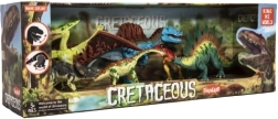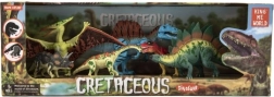 Acest set colorat de dinozauri aduce copiilor forme realiste și detalii de suprafață care stimulează curiozitatea și jocul. Speciile diferite, cu trăsături caracteristice (coarne, creste, gâturi lungi), sprijină cunoașterea animalelor din perioada Cretacică și povestirea imaginativă.