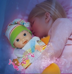 Funcțiile interactive îi vor captiva pe copii – păpușa redă muzică delicată și aprinde luminițele pentru și mai multă bucurie în joc.