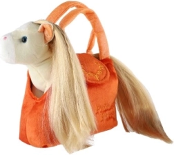 Această geantă plușată portocalie ascunde înăuntru un căluț adorabil, care poate fi scos și pus la loc oricând. Coama lungă și mătăsoasă invită la pieptănat și împletit codițe, dezvoltând motricitatea fină și creativitatea.