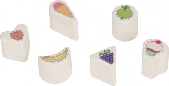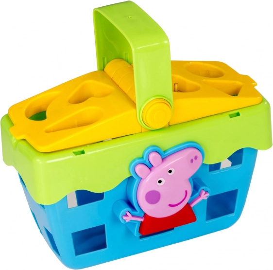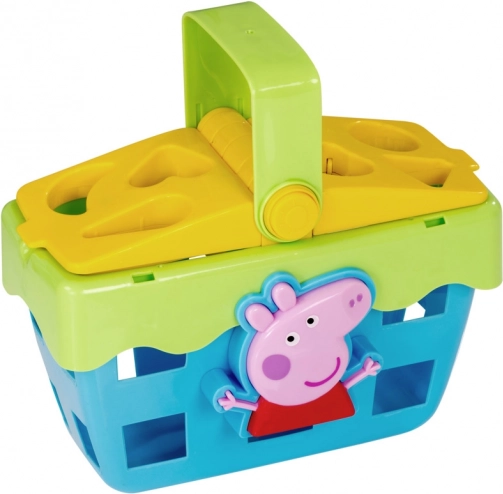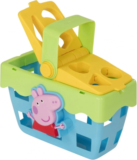 Include șase piese modelate cu imprimeuri alimentare din cunoscutul serial Peppa Pig. Coșul susține stadiile timpurii de dezvoltare ale copilului prin învățarea sortării diferitelor forme și culori. Necesită două baterii AAA pentru funcționarea sunetelor și luminii.