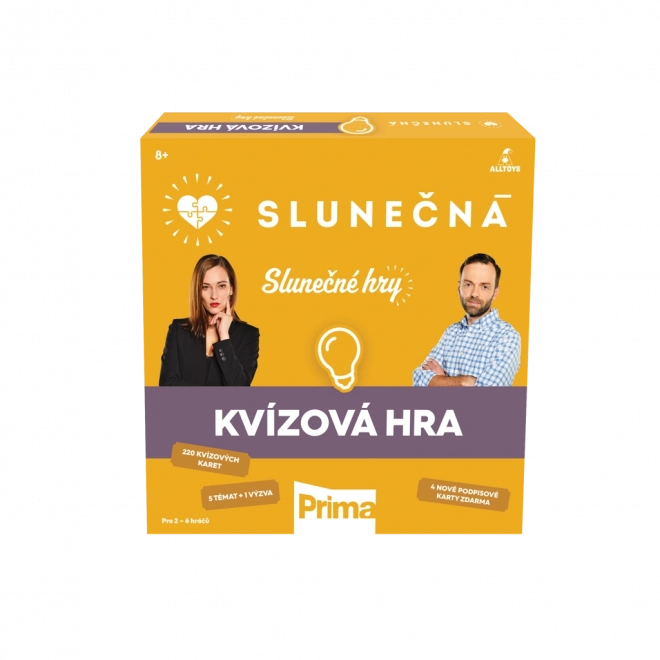 Joc de quiz distractiv pentru familie, inspirat de serialul SLUNEČNÁ, care îți testează cunoștințele despre îndrăgitul program de la FTV Prima. 5 arii de întrebări + categoria specială Provocare, ruletă, avans pe planșă și suspans până la finish. Joc pentru 2–6 jucători, potrivit de la 8 ani.