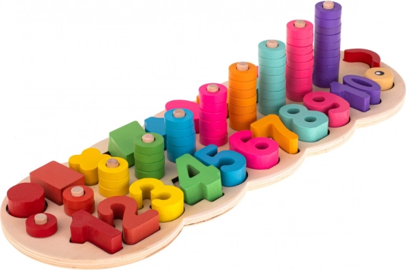 Jucăria educațională din lemn Omida oferă o oportunitate excelentă pentru dezvoltarea diverselor abilități ale copiilor. Include o bază în formă de omidă împreună cu zece cuburi colorate diferit, numere de la 1 la 10 și 55 de inele colorate. Copiii pot asocia formele cu orificiile corespunzătoare, îmbunătățindu-și astfel motricitatea și coordonarea.