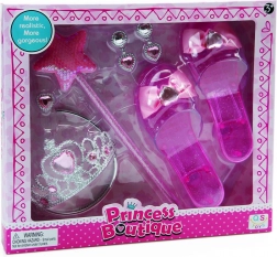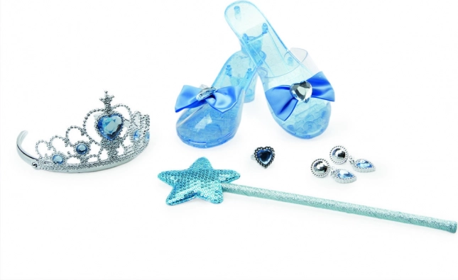 - Coroană, diademă, pantofiori, cercei, inel, baghetă magică