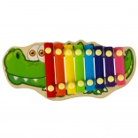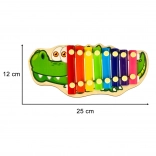 Descoperiți bucuria muzicii cu acest xilofon adorabil în formă de crocodil. Datorită celor opt tonuri diferite, copiii pot interpreta cu ușurință primele melodii simple. Cântatul la instrument susține creativitatea, răbdarea, concentrarea și ajută la formarea simțului ritmului.
