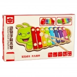 Pachetul conține: xilofon din lemn în formă de crocodil, 2 baghete din lemn, cartonaș cu „acorduri”/indicații simple pentru cântat.