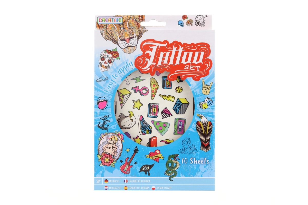 Descoperiți latura creativă cu acest set de tatuaje, care include 10 foi pline de tatuaje captivante pentru fete și băieți. Bucurați-vă de aplicare ușoară și distracție de neuitat pentru copii.