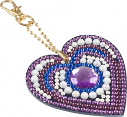 Acest breloc are o piatră mare mov înconjurată de pietre albe și albastre. Lanțul și clipsul auriu permit o atașare ușoară.