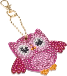 Designul original al bufniței completat cu mărgele roz și alte culori adaugă un aspect jucăuș fiecărui set de chei.