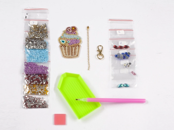 Creează un breloc unic în formă de cupcake cu pietricele colorate. Această decorațiune distractivă este ideală pentru a adăuga puțină dulceață vieții de zi cu zi.