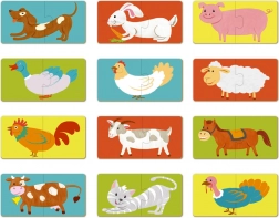 Setul de puzzle-uri simple din două piese este destinat copiilor care abia încep cu puzzle-urile. Piesele mari și rezistente, cu grosimea de aproximativ 3 mm, le ușurează copiilor asamblarea. Dimensiunea piesei: 6,5×5,5 cm. Vârstă: 18 luni+