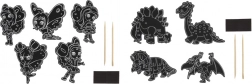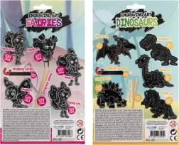 Acest set distractiv și creativ oferă ore întregi de activități pentru mici și mari. Trebuie doar să răzuiești ușor stratul superior pentru a dezvălui motivele colorate cu zâne sau dinozauri. Creațiile finale se fixează cu ușurință pe frigider sau pe altă suprafață metalică, decorând casa cu magneți originali.