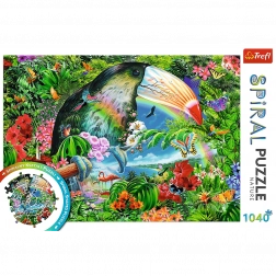 Descoperă puzzle-ul spiral unic cu motiv de animale tropicale. Setul conține 1040 de piese, care, odată asamblate, formează o imagine spiralată cu dimensiunile 68,3 × 48 cm. Fabricat din materiale de calitate și ecologice, cu hârtie calandrată, reflectantă pentru o asamblare mai ușoară. Distracție și provocare pentru orice pasionat de puzzle-uri.