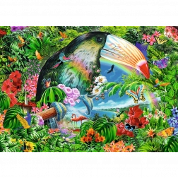 Pornește în vârtejul distracției cu puzzle-ul spiral, unde fiecare piesă se îmbină într-o compoziție unică, rezultând o imagine dinamică a faunei tropicale. Hârtia calandrată specială reflectă lumina și îmbunătățește lizibilitatea motivului, astfel încât asamblarea este mai plăcută chiar și în sesiuni mai lungi.