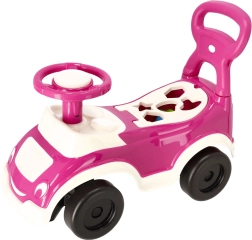 Vehicul multifuncțional 4în1 de la Pilsan combină mersul pe jos, împingătorul, împingerea de către adult și un sorter educativ de forme. Oferă claxon mecanic, spătar detașabil, spațiu de depozitare sub scaun și materiale sigure, non-toxice pentru joacă plină de bucurie și în siguranță.