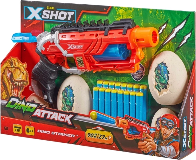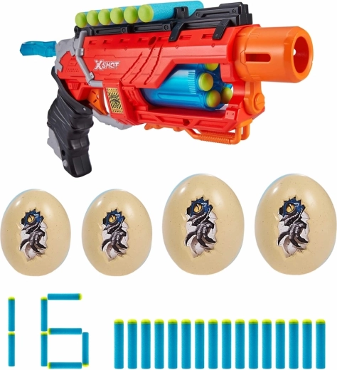 Trăiește aventura plină de acțiune cu pistolul X-Shot Dino Attack Dino Striker. Acest blaster ușor și rezistent lansează săgeți din spumă dintr-un tambur rotativ și oferă încărcare rapidă, armare ușoară și distracție sigură pentru copii de la 8 ani – atât acasă, cât și în aer liber.
