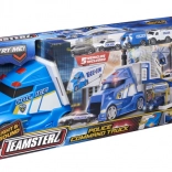 Bucurați-vă de aventuri nesfârșite cu setul de transport poliție Teamsterz, care include efecte de lumină și sunet, lift și pompă funcționale și conține 4 mașinuțe și un elicopter.