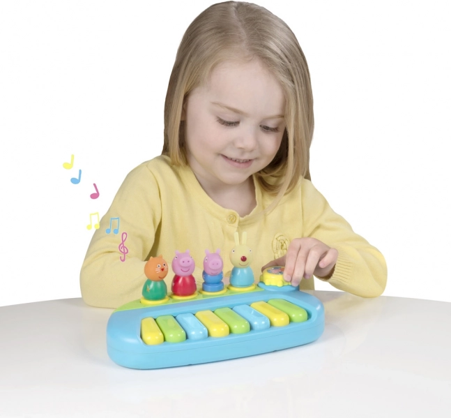 Pianul vine într-o cutie colorată cu grafică Purceluța Peppa, ideal pentru cadou.