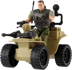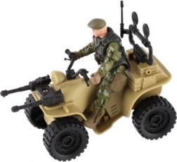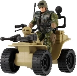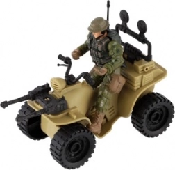 Acest ATV oferă detalii realiste, inclusiv îmbrăcămintea de camuflaj a soldatului și anvelopele mari negre.