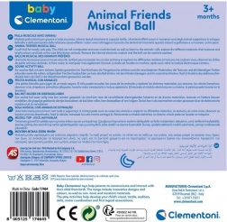 Mingea muzicală BABY CLEMENTONI este concepută pentru a-i motiva în mod natural pe copii să exploreze. Sunetele de animale și melodiile plăcute stimulează percepția auditivă, în timp ce materialele moi cu texturi variate și buclele colorate dezvoltă simțul tactil și motricitatea fină. Datorită dimensiunii compacte Ø 15 cm, mingea se prinde ușor chiar și de către cei mai mici.