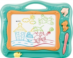 Această tăbliță magnetică colorată le permite copiilor să creeze fără niciun deranj – este suficient să deseneze cu stiloul inclus și să șteargă ușor totul dintr-o singură mișcare a glisorului. Datorită formei compacte cu mâner, copiii o pot lua oriunde – în mașină, în vizită sau în vacanță.