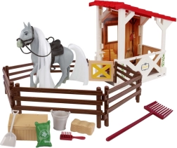 Descoperă farmecul vieții la țară cu setul grajd cu căluț și țarc, care îi va încânta pe toți micii iubitori de cai. Setul include grajd, țarc și accesorii practice pentru îngrijirea calului – hrană și unelte. Jocul dezvoltă motricitatea fină, creativitatea și imaginația. Potrivit pentru copii de la 3 ani.