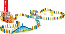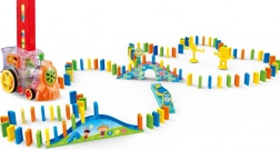 O locomotivă distractivă cu domino pentru copii de la 3 ani oferă ore de joacă creativă. Locomotiva în mișcare așază automat piesele de domino, iar copiii urmăresc efectul spectaculos al căderii lor. Susține motricitatea fină, creativitatea, concentrarea și gândirea logică. Necesită 2× baterii AA (nu sunt incluse în pachet).