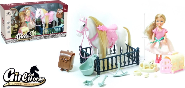 Acest set de fermă aduce lumea animalelor domestice direct în camera copilului. Datorită combinației dintre căluț, păpușă și cățel, copiii își pot crea propriile povești, pot învăța să îngrijească animăluțele și să își dezvolte abilitățile sociale.