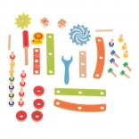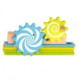 Roțile dințate colorate și piesele de construcție introduc principiile mecanicii într-un mod distractiv și stimulează creativitatea.