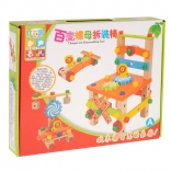 Include șurubelniță din lemn, cheie, șuruburi și piulițe – copiii învață să îmbine corect piesele și își dezvoltă motricitatea fină.