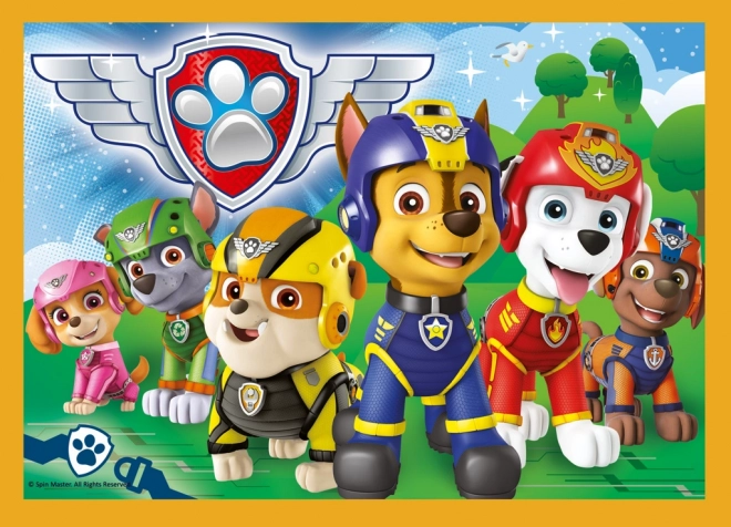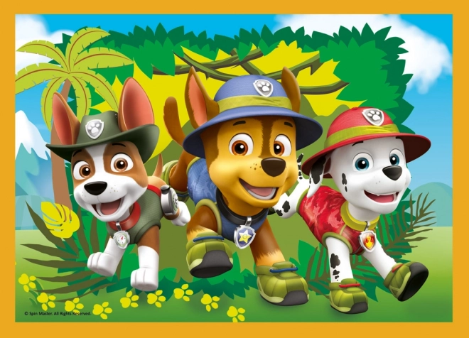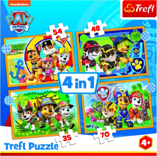 Setul conține patru motive diferite cu eroi din serialul Patrula cățelușilor: Marshall, Chase, Skye, Rubble, Zuma și Rocky. Fiecare puzzle are un număr diferit de piese – 35, 48, 54 și 70 de piese, ceea ce îi ajută pe copii să învețe să numere și astfel să-și dezvolte abilitățile matematice.