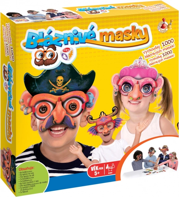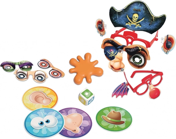 Creați mii de combinații haioase și concurați pentru cea mai trăsnită mască. Copiii aruncă pe rând cu zarul, aleg componentele și în câteva clipe apar pirați, monstruleți cu coarne și personaje năstrușnice. Piesele colorate se atașează ușor pe ochelari, astfel încât jocul este rapid, sigur și intuitiv.