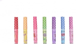 - Setul conține **7 nuanțe de luciu de buze**: albastru, violet, verde, roșu, roz închis, roz deschis și galben.