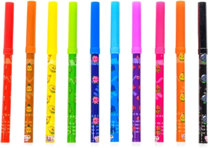 Carioci parfumate, 10 bucăți. Desenatul va fi acum o distracție parfumată! Folosește aceste carioci frumoase și colorate, care miros a fructe. Fiecare culoare are parfumul ei specific. Conține 10 carioci.