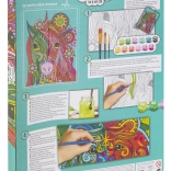 - Set complet: pânză pe cadru 30 × 40 cm, vopsele acrilice, 3 pensule