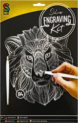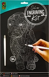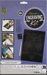 În pachet găsiți tot ce aveți nevoie: imagine 25 × 20 cm, stilou de răzuit din plastic cu vârf metalic și un cartonaș de probă pentru exersarea tușelor și texturilor.