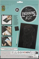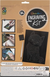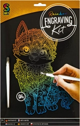 Stratul de acoperire negru se transformă, la răzuire, în culori vii de curcubeu. Veți realiza un motiv detaliat de pisică fără a avea nevoie de vopsele sau adezivi – este suficient instrumentul inclus.