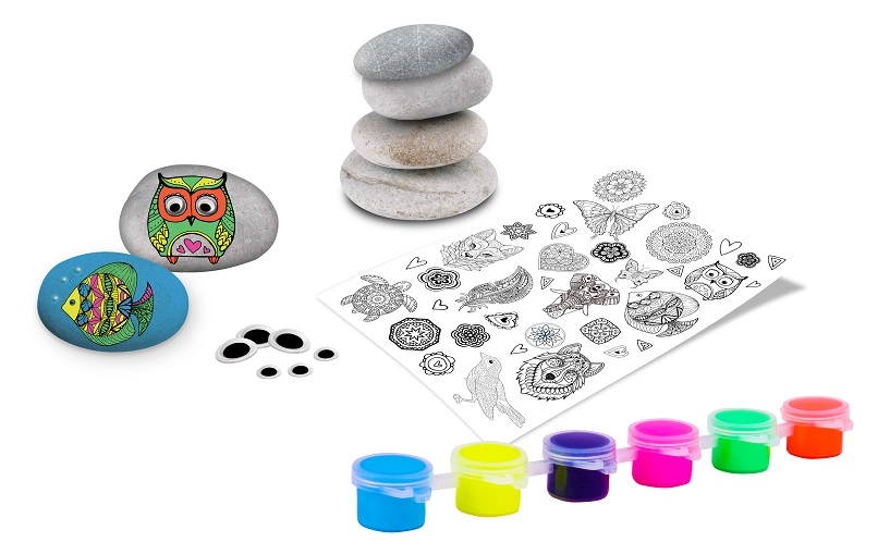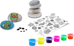 Acest set creativ complet transformă pietricelele obișnuite în decorațiuni strălucitoare. Datorită culorilor neon, motivele tale se evidențiază atât ziua, cât și sub lumină UV, iar autocolantele transferabile și ochii autoadezivi adaugă personalitate creațiilor tale. Ai tot ce îți trebuie într-un singur pachet – deschizi și creezi.