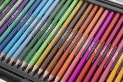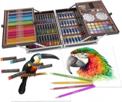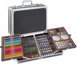 Acest set bogat echipat aduce tot ce aveți nevoie pentru creație creativă acasă, la școală sau în călătorii. Servieta metalică cu rafturi interne păstrează toate instrumentele la locul lor și facilitează orientarea rapidă. Datorită gamei largi de medii coloristice, puteți încerca diverse tehnici, de la desen la pictură.