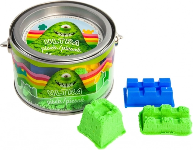 ULTRA NISIP verde aduce ore întregi de joacă creativă pentru copii și adulți. Este plăcut și catifelat la atingere, își păstrează foarte bine forma și nu murdărește mâinile sau suprafața. Ideal pentru activități creative acasă, jocuri senzoriale și relaxare.