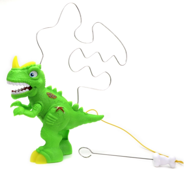 Pune-ți la încercare îndemânarea cu acest joc electronic distractiv în stil labirint cu dinozaur! Cu ajutorul baghetei cu cârlig, încearcă să parcurgi întreaga traseu fără să atingi. Dacă greșești, dinozaurul rage și se aprinde, așa că tensiunea și râsetele sunt garantate. Ideal pentru distracția copiilor și adulților și pentru antrenarea motricității fine și a răbdării.