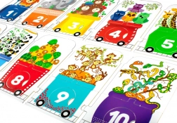 Fiecare vagon și locomotiva sunt alcătuite din trei piese, ideal pentru dezvoltarea abilităților mentale și motorii ale copiilor de vârstă mică și preșcolară. Puzzle-ul este un instrument excelent pentru a apropia copiii de numele animalelor și a-i ajuta să înțeleagă cifrele.