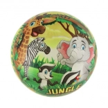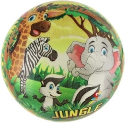 Descoperiți bucuria jocului cu mingea cu motiv Jungle, ideală pentru jocurile și activitățile sportive preferate de copii. Mingea este fabricată din cauciuc rezistent, fiind ușor de întreținut – în caz de murdărire, este suficient să o clătiți cu apă și puteți continua jocul. Cu un diametru de 23 cm, mingea este ușor de prins pentru mâinile mici ale copiilor.