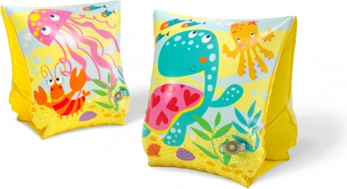 Mânecuțe de înot pentru copii cu tematică subacvatică. Mânecuțele au 2 camere de aer și au dimensiunea de 23×15 cm. Limită de greutate 18–30 kg. Produsul este potrivit pentru copii cu vârsta între 3 și 6 ani.