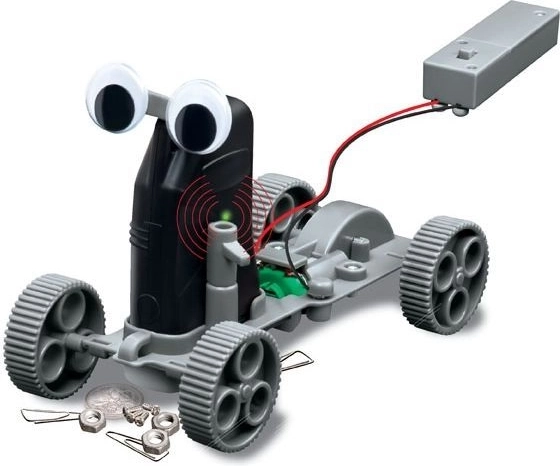 Construiește un robot isteț care poate căuta obiecte metalice în jur. Setul 4M prezintă pe înțelesul copiilor principiile electronicii și ale detecției metalelor și oferă totodată multă distracție practică. Detectorul de metale final este excelent pentru experimente acasă, joacă și primele proiecte științifice.