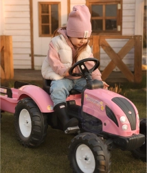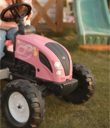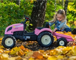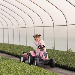 Tractorul cu pedale FALK Country Star, de culoare roz, este ideal pentru micii fermieri de la 2 ani. Oferă construcție robustă, remorcă detașabilă, roți din plastic de calitate și claxon pe volan pentru și mai multă distracție.